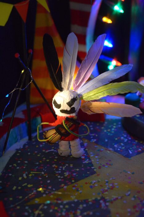 Faisons le tour du monde à travers les masques tribaux et imaginons un peuple avec son propre langage et son histoire. Récupérons des filets de fruits, de la matière , fils, laine tissus et autres matériaux qui dans tes mains s’assembleront pour fabriquer et créer un masque ou un trophée de cette peuplade que tu auras inventé .