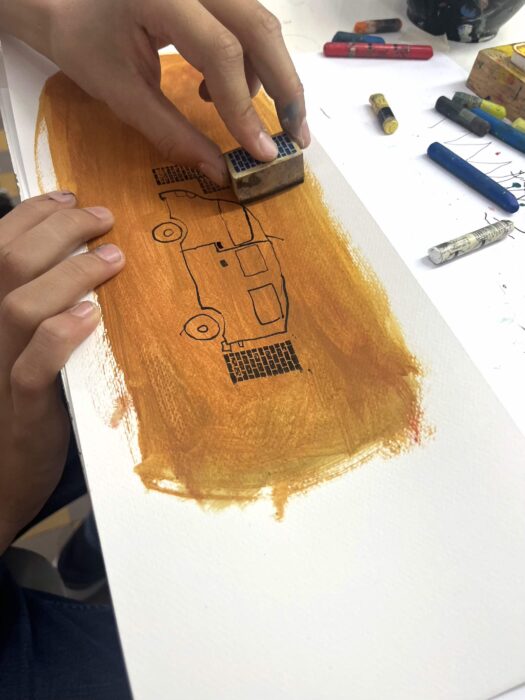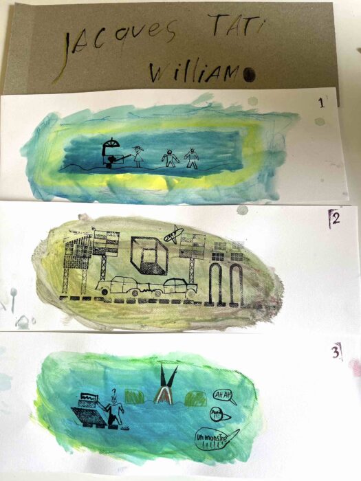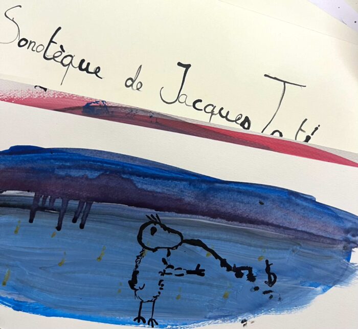 Dessine le bruit ! En écoutant les bandes-son des films de Jacques Tati. Traduis ses bruitages savants en œuvres picturales. Tu découvriras ses films mythiques : Les vacances de Monsieur Hulot, Mon oncle, Play -Time, Jour de Fêtes et d’autres encore…