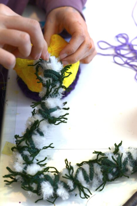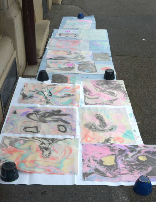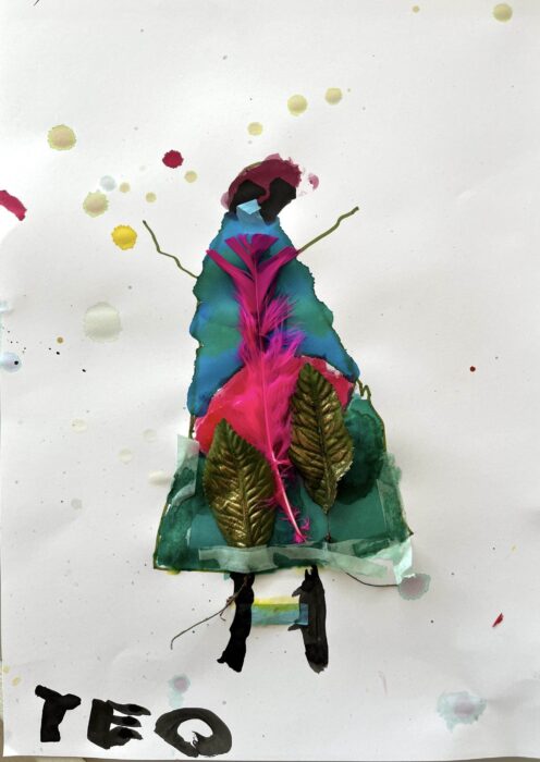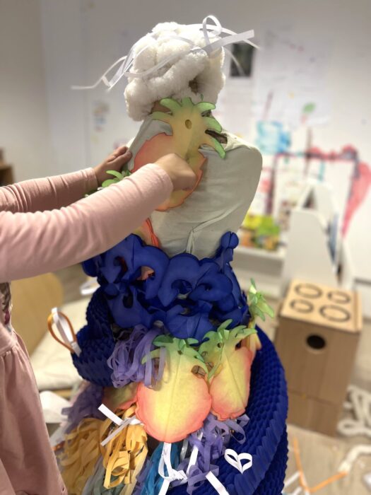 Les enfants de l’écoline s’improvisent « stylistes en herbe »créent des ébauches de robes, des tissus et des robes en s’inspirant des différents matériaux récupérés.