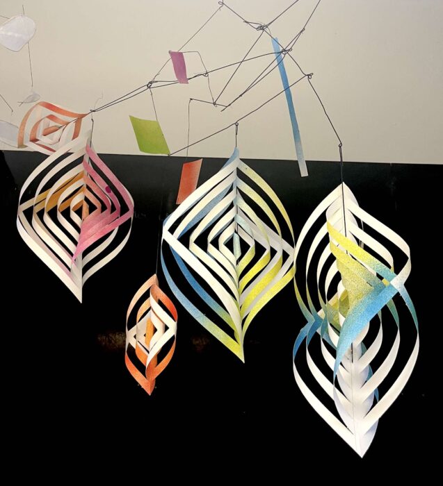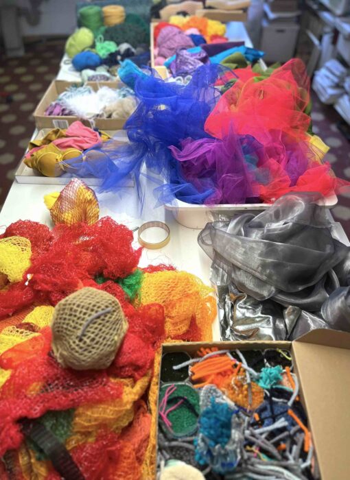 A disposition toutes sortes de matériaux légers … acteurs de cette danse dans les airs.