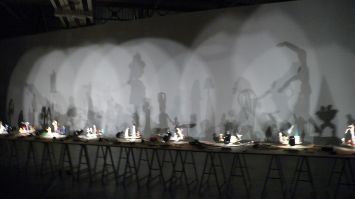 Hans-Peter Feldmann, SHADOW PLAY , un jeu d'ombre et de lumière avec des objets propre à l'enfance, posés sur des platines tournantes. Une sensation un peu fantomatique de nos propres jouets! A ne pas manquer surtout aussi l'installation permanente de ANSELM KIEFER, The Seven Heavenly Palaces, sept tours en béton et en plomb de 15 m de haut qui s'élèvent sous la voûte du hangar de 7000 m2!! (ancienne fabrique de pirelli) wwww.hangarbicocca.it